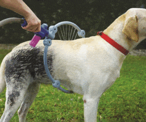 Cuando ya tengas entrenado al perro para saltar por un aro podrás lavarlo de una sola pasada o dos con el anillo limpiador 360.
